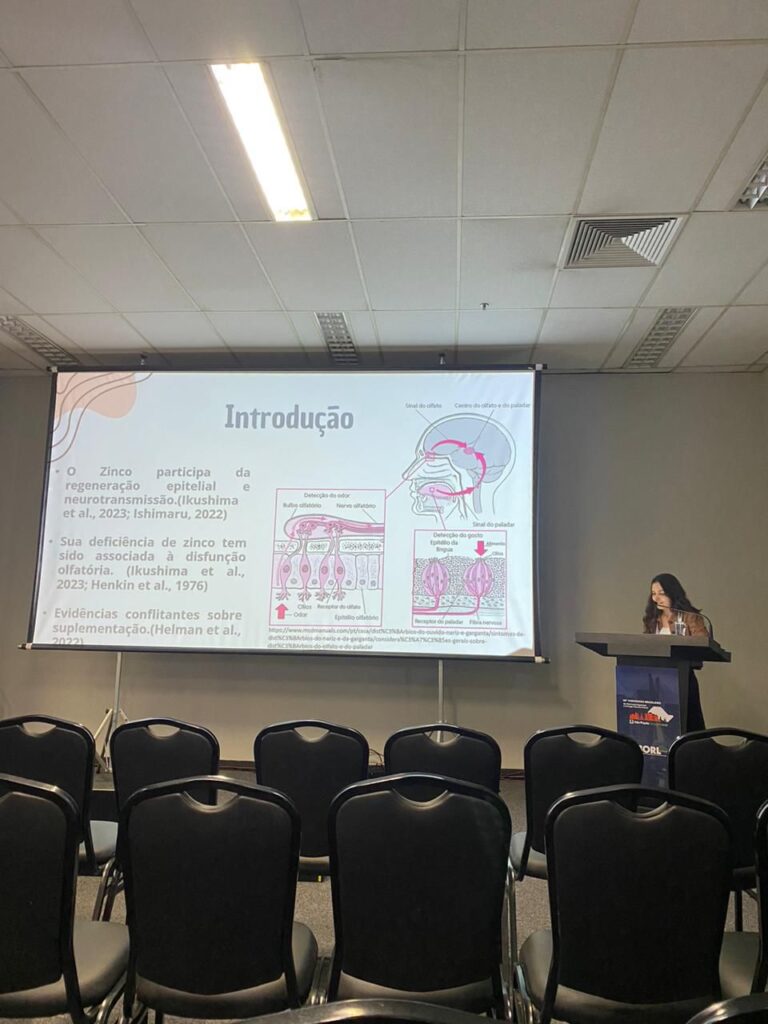 As alunas de Medicina Milene e Gabriela, juntamente com a residente Juliana, participaram ativamente do evento, apresentando pesquisas desenvolvidas dentro do grupo. Seus trabalhos receberam destaque pela relevância científica e pela abordagem inovadora na área de otorrinolaringologia.