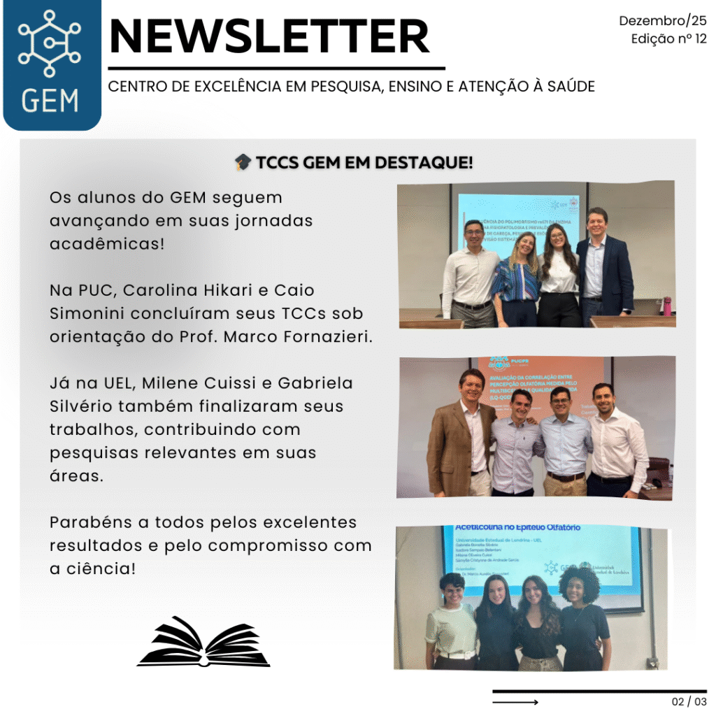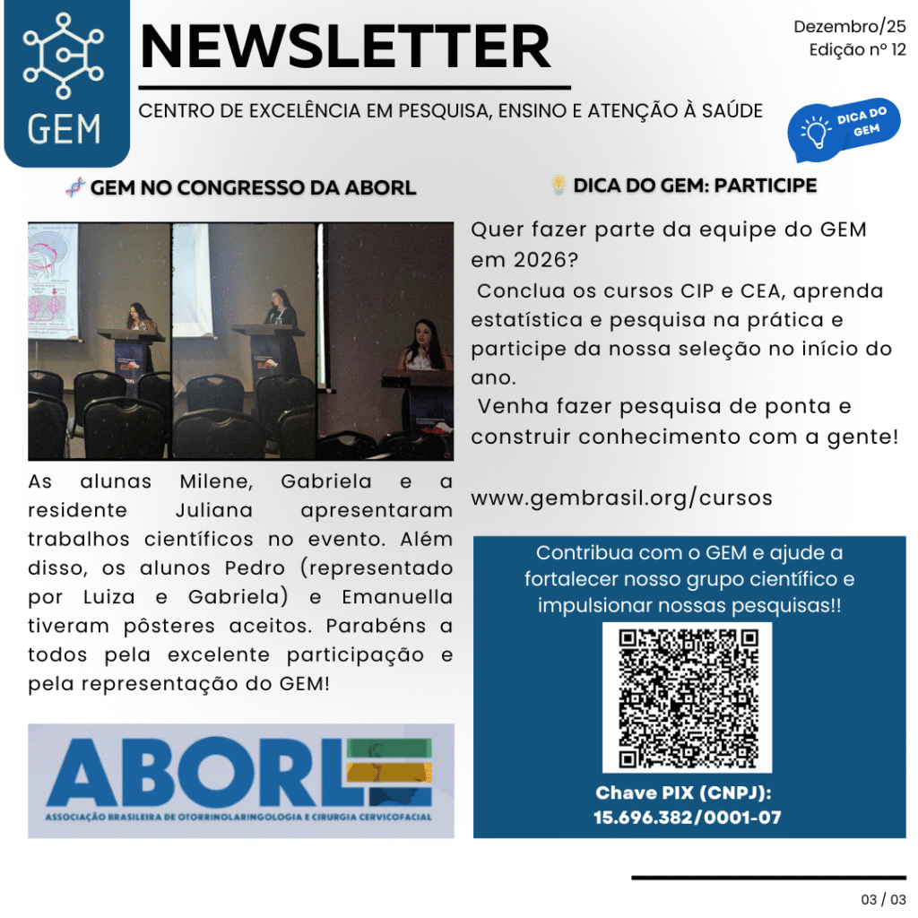 A Newsletter também reforça um convite especial: a seleção para novos integrantes do GEM em 2026 está chegando!